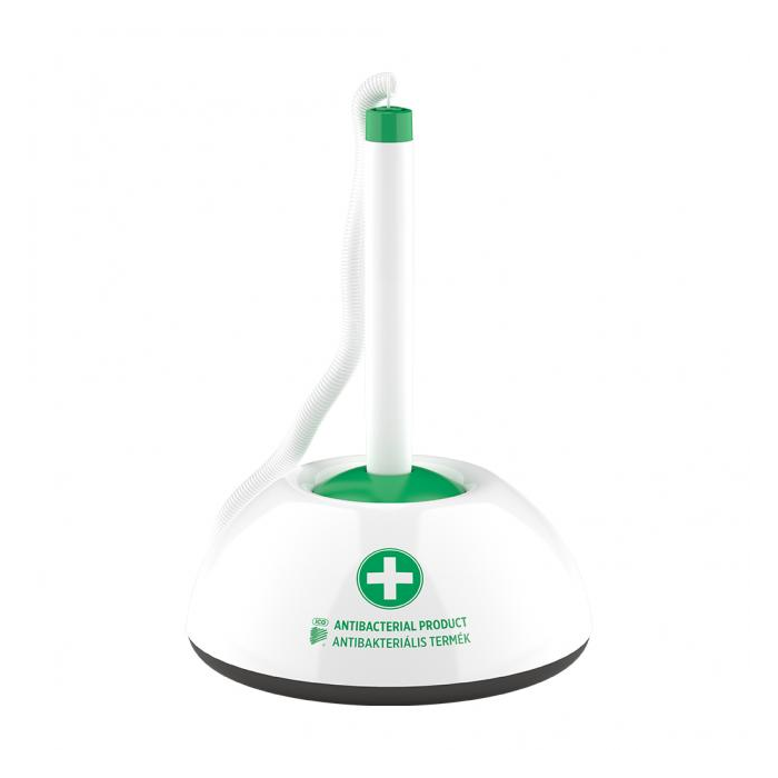 Antibakteriálne pero so stojanom. Plastové časti sú vyrobené zo zlúčeniny strieborných iónov, ktorá má antibakteriálny účinok. Dodávané s vymeniteľnou náplňou X-20. Šírka stopy : 0,8 mm. Dĺžka stopy :2500 mm.