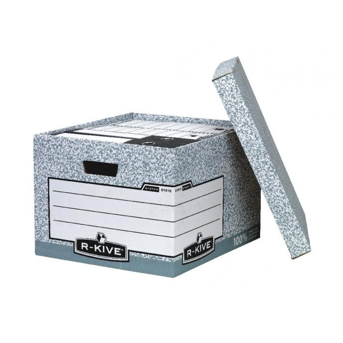 Veľká archívna krabica s odnímateľným vekom a bočnými výrezmi na uchytenie. Vhodná aj na archívne boxy. Steny spevnené zdvojenou vrstvou kartónu. Nosnosť 35,2 kg. Možnosť navyšovania do troch úrovní. Dodávaná v rozloženom stave naplocho. Väčšie balenie 20 ks. Farba sivá/-biela.