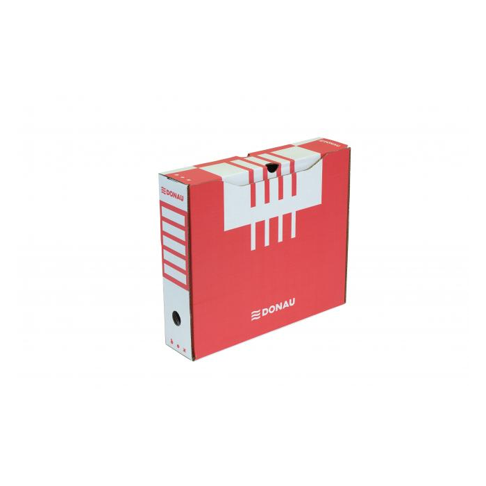 Archívny box z trojvrstvovej lepenky s certifikátom FSC® (drevo na jej výrobu pochádza z lesov, obhospodarovaných udržateľným spôsobom), bez obsahu kyseliny (pH 7,5). Vhodný na archiváciu dokumentov do formátu A4 s otvorom na ľahkú manipuláciu. Možnosť archivovať aj zakladač Donau. Predtlače na popis na dlhšej i kratšej strane umožňuje skladovanie vo vodorovnej aj zvislej polohe. Box je využiteľný samostatne alebo v kombinácii s archivačnými krabicami. Gramáž 390 g. Rozmery 297x80x339mm. Väčšie balenie 20 ks.