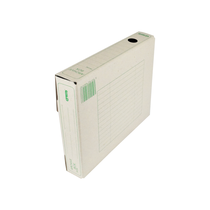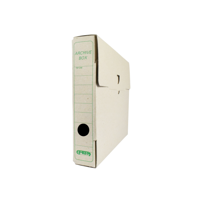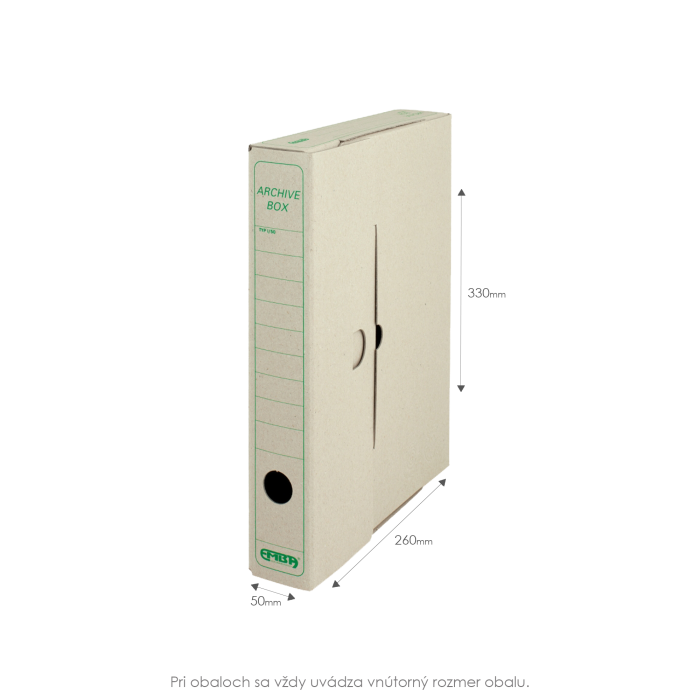 Ekologický výrobok. Box z recyklovateľnej špeciálne impregnovanej lepenky odolnej voči atmosferickej vlhkosti na dlhodobé uloženie záznamov. Tri varianty postavenia, kvalitná sieťotlač. Vhodný v kombinácii so skupinovým boxom. Väčšie balenie 25 ks. Rozmery (š x v x d) 50 x 330 x 260 mm.