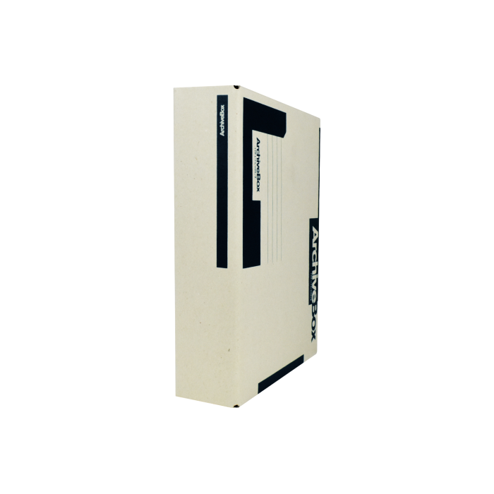 Systém archívnych boxov a škatúľ z vlnitej lepenky. Dodávané v rozloženom stave. Farba prírodná hnedá. Archívny box z hladkej ručnej lepenky, 1 000 g/ m². Konštrukčné riešenie boxu umožňuje rýchly prístup k vloženým dokumentom. Rozmery