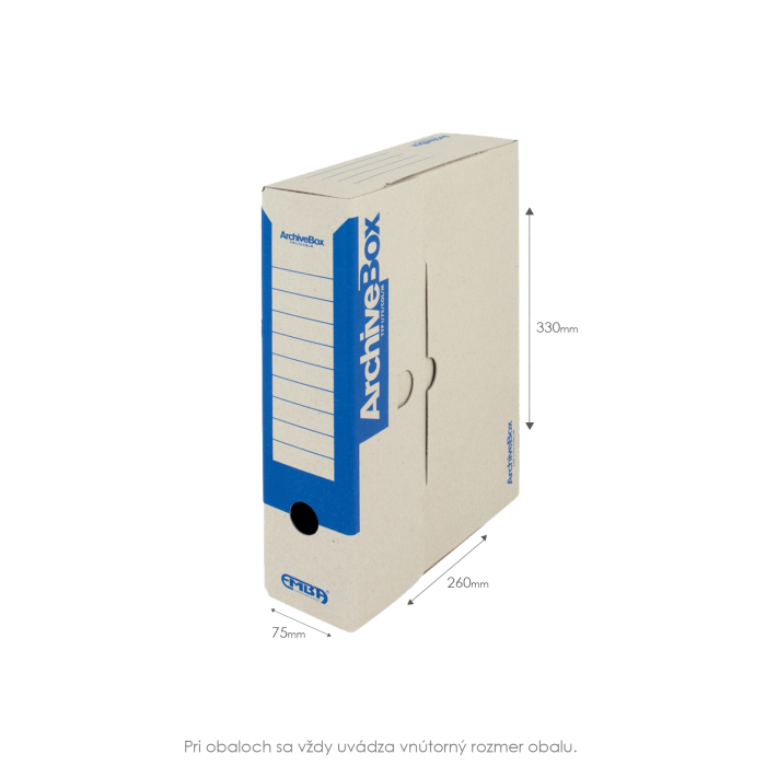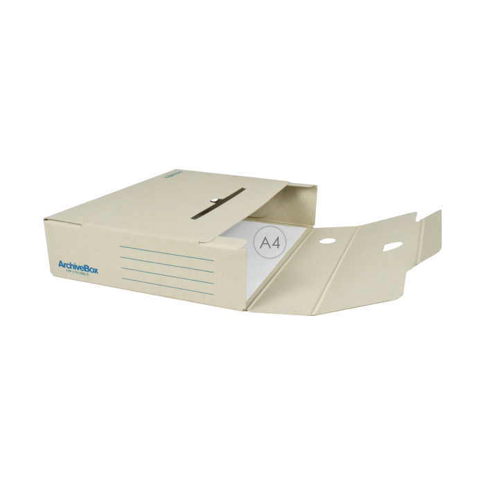 Systém archívnych boxov a škatúľ z vlnitej lepenky. Dodávané v rozloženom stave. Farba prírodná hnedá. Archívny box z hladkej ručnej lepenky, 1 000 g/ m². Konštrukčné riešenie boxu umožňuje rýchly prístup k vloženým dokumentom. Rozmery