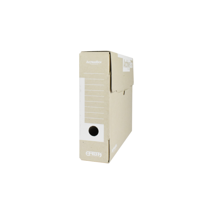 Systém archívnych boxov a škatúľ z vlnitej lepenky. Dodávané v rozloženom stave. Farba prírodná hnedá. Archívny box z hladkej ručnej lepenky, 1 000 g/ m². Konštrukčné riešenie boxu umožňuje rýchly prístup k vloženým dokumentom. Rozmery 75 × 330 × 260 mm. Väčšie balenie 25 ks. Farba biela.