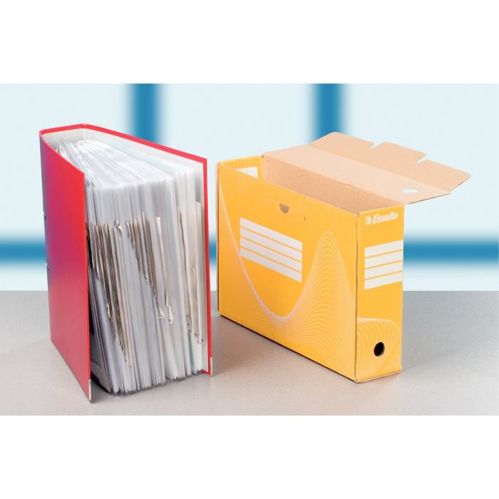 Boxy s kapacitou 1000 listov formátu A4. Šírka chrbta 100 mm.Archívne boxy sú z recyklovného kartonu s otvorom pre ľahkú manipuláciu určené na archiváciu dokumentov. Predtlač na popis na dlhšej a kratšej strane umožňuje ich skladovanie vo vodorovnej aj zvislej polohe. Boxy je možné používať samostatne alebo v kombinácii s archivačnými krabicami.