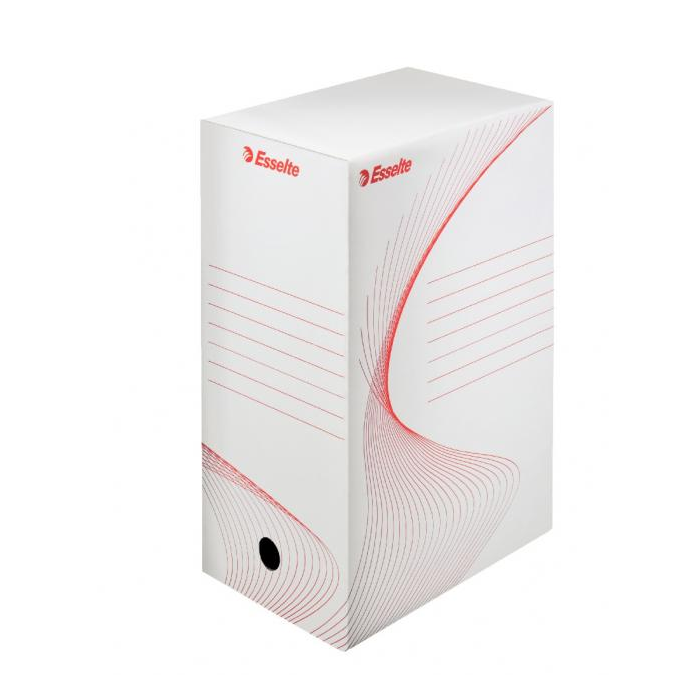 Archívny box z recyklovaného kartónu vo sviežej farbe VIVIDA na archiváciu dokumentov do formátu A4 s otvorom na ľahkú manipuláciu. Predtlač na popis na dlhšej i kratšej strane umožňuje skladovanie vo vodorovnej aj zvislej polohe. Box je využiteľný samostatne alebo v kombinácii s archivačnými krabicami. Väčšie balenie 25 ks. Chrbát: 150 mm Rozmery (š x v x h): 150 x 352 x 250mm Farba: biela/červená