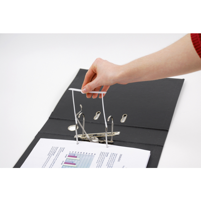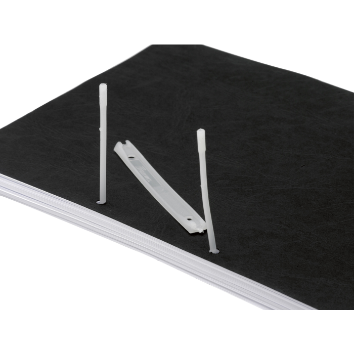 Dvojdielny klip z plastu na jednoduché a rýchle zviazanie papierov zo zakladačov. Dĺžka 80 mm. Balenie 100 ks.