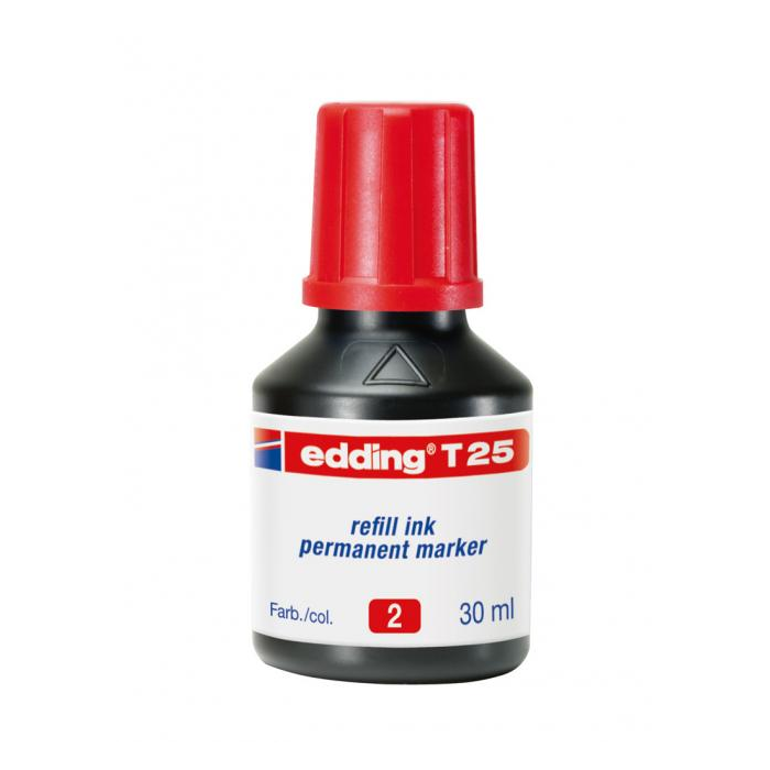 Atrament s kvapkovým dávkovačom na dopĺňanie permanentných popisovačov edding 2000 C, 2200 C, 400, 500, 550, 800, 850, 370 a 390. Pri dopĺňaní vložte prednú časť popisovača špičkou do fľaštičky a po niekoľkých minútach bude popisovač pripravený k opätovnému použitiu. Obsah 30 ml. Tento chemický prípravok je nebezpečný.