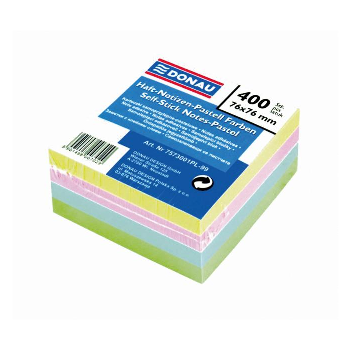 Bloček DONAU 76 x 76 mm, 4 pastelové farby, 400 lístkov