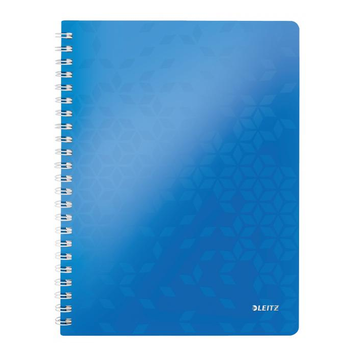 Poznámkový linajkový blok z dizajnovej rady Leitz WOW vo výrazných farbách s 80 hárkami perforovaného linajkového bezdrevného papiera. Vonkajší obal z polypropylénu. Vnútorný obal na voľné papiere a dokumenty, súčasťou bloku je odnímateľné pravítko, použiteľné ako záložka. Formát A4. Papier 80 g/m2. Väčšie balenie 6 ks. Farba modrá.
