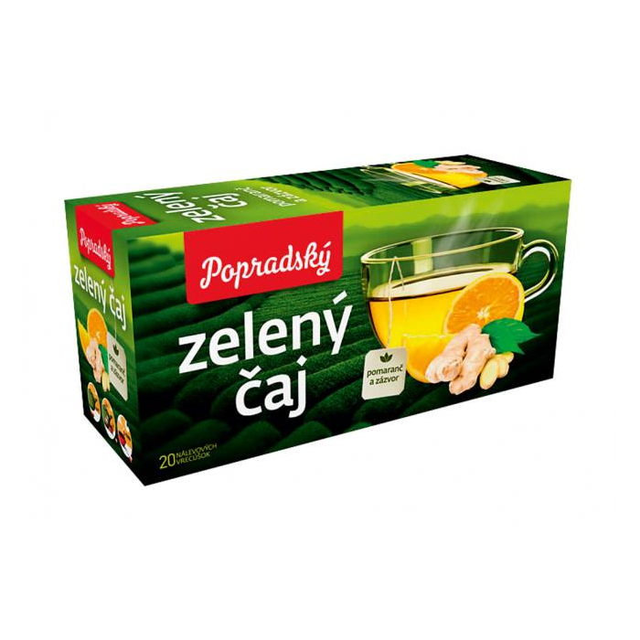 Aromatizovaný zelený čaj s príchuťou pomaranč a zázvor. Porciovaný v nálevových vreckách.