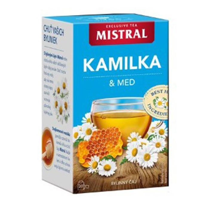 Mistral - Aromatizovaný bylinný čaj s príchuťou Rumanček a med, porciovaný v nálevových vreckách.