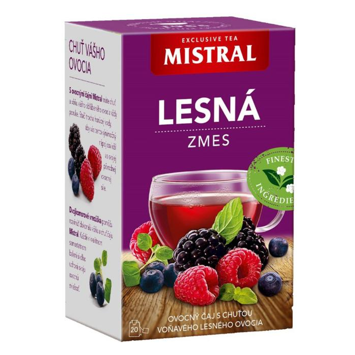 Mistral - Aromatizovaný ovocný čaj s príchuťou Lesná zmes, porciovaný v nálevových vreckách.