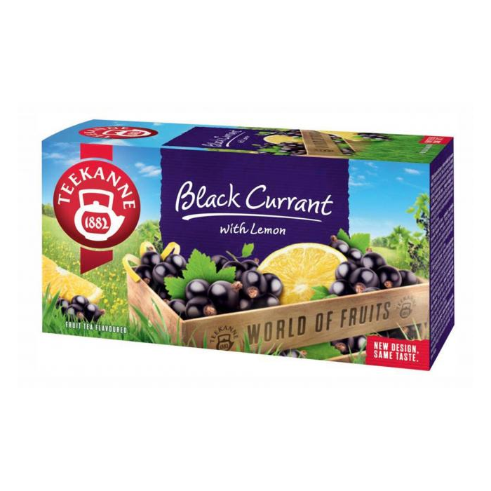 Výborný osviežujúci čaj Teekanne s jemnou chuťou čiernej ríbezle a citrónu. V balení 20 x 2,5 g.