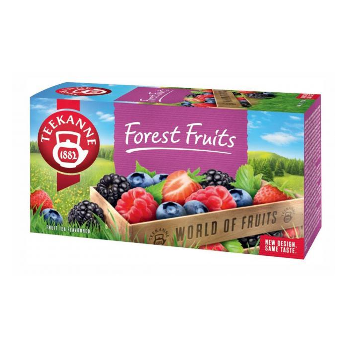 Ovocný čaje Teekanne s príchuťou lesných plodov. V balení 20 x 2,5 g.