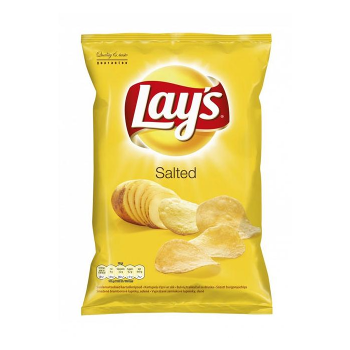 Smažené zemiakové lupienky so soľou. Hmotnosť 80 g.