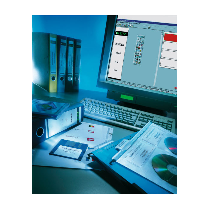 Náhradné zasúvacie papierové chrbtové štítky pre šírku chrbta 5,2 cm vhodné na potlač do laserových a atramentových tlačiarní a kopíriek cez jednoduchý internetový nástroj `EASYPRINT` na stránke www.esselte.com/easyprint. V balení 25 hárkov (á 7 štítkov na liste = 175 ks štítkov) s predperforovanými štítkami.