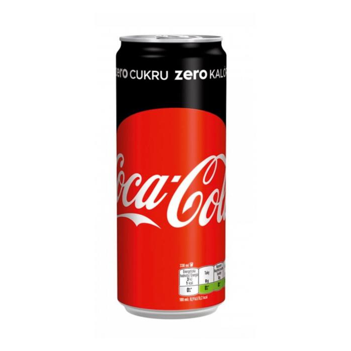 Obľúbený nealkoholický nápoj. Objem 1 ℓ. Balenie 24 × 0,33 ℓ v plechovke. Coca-Cola Zero je nízko kalorický nealkoholický nápoj s kolovou príchuťou so sladidlami. Zloženie: Voda, Oxid uhličitý, Farbivo: E 150d, Sladidlá: cyklamát sodný, acesulfám K a aspartám (obsahuje zdroj fenylalanínu), Kyselina: kyselina fosforečná, Prírodné arómy vrátane kofeínu, Regulátor kyslosti: citrany sodné.