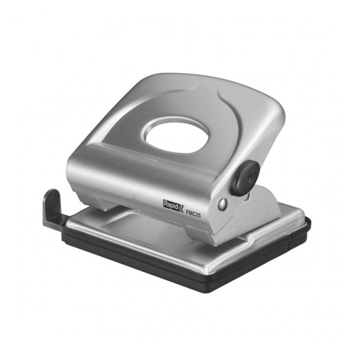 Odolný kovový dierovač s uzamykateľným ramenom na jednoduché skladovanie. Vhodný do kancelárie. Farba strieborná.