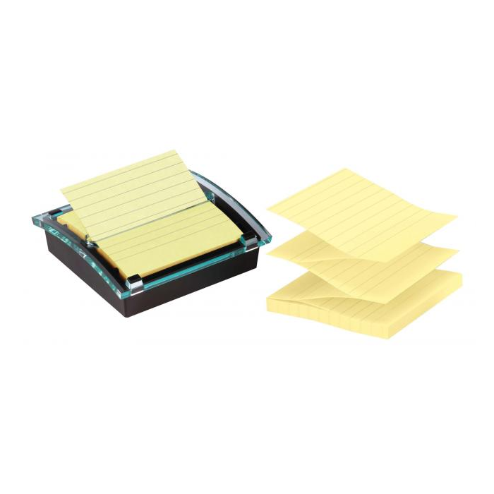Dispenzor stolový s balením žltých liinajkových Z-bločkov Post-it Super Sticky v rozmeroch 101 x 101 mm zabezpečí jednoduchú manipuláciu a vytiahnutie lístka jednou rukou. Farba žltá. Rozmery 101 x101mm. Počet lístkov 90.