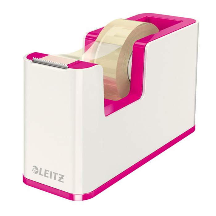 Atraktívny dispenzor s lepiacou páskou v dvojfarebnom prevedení v metalických farbách Leitz WOW s lesklým povrchom. V praktickom dizajne na pohodlné ovládanie jednou rukou. Farba ružová.
