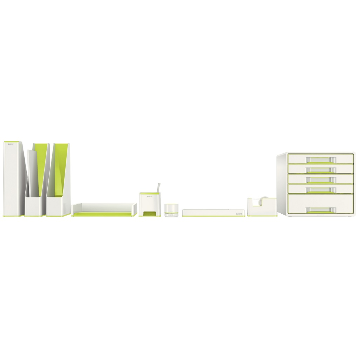 Atraktívny dispenzor s lepiacou páskou v dvojfarebnom prevedení v metalických farbách Leitz WOW s lesklým povrchom. V praktickom dizajne na pohodlné ovládanie jednou rukou. Farba zelená. Pre kotúčiky pások do veľkosti 19 mm × 33 mm.