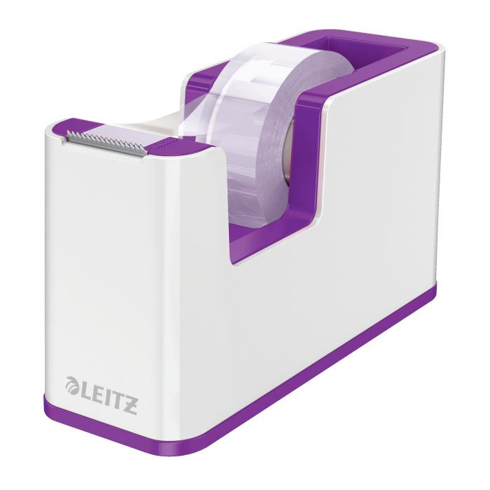 Atraktívny dispenzor s lepiacou páskou v dvojfarebnom prevedení v metalických farbách Leitz WOW s lesklým povrchom. V praktickom dizajne na pohodlné ovládanie jednou rukou. Farba purpurová. Pre kotúčiky pások do veľkosti 19 mm × 33 mm.
