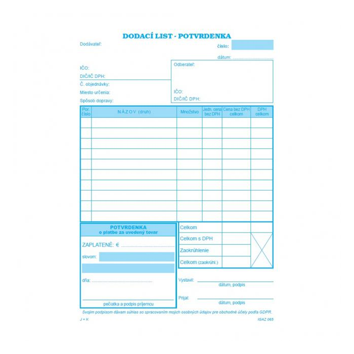 Dodací list, A5, s DPH, s potvrdenkou, samoprepis