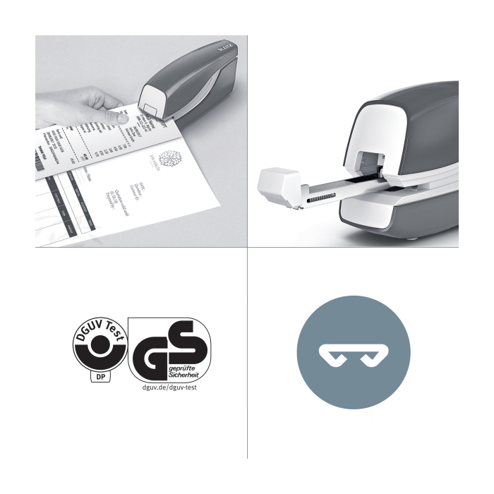 Elektrická zošívačka Leitz New NeXXt WOW. Vďaka jednoduchému ovládaniu jednou rukou je ideálna na časté používanie.