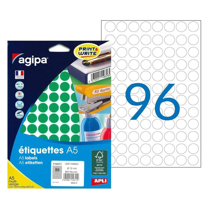 Etikety kruhové 15mm Agipa A5 zelené