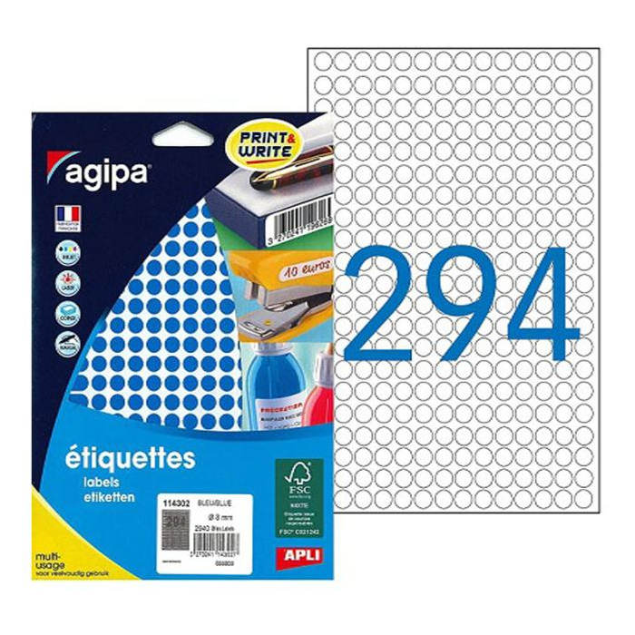 Etikety kruhové 8mm Agipa A5 modré