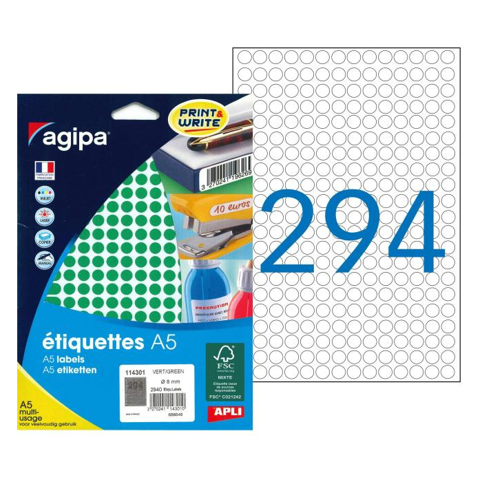 Etikety kruhové 8mm Agipa A5 zelené