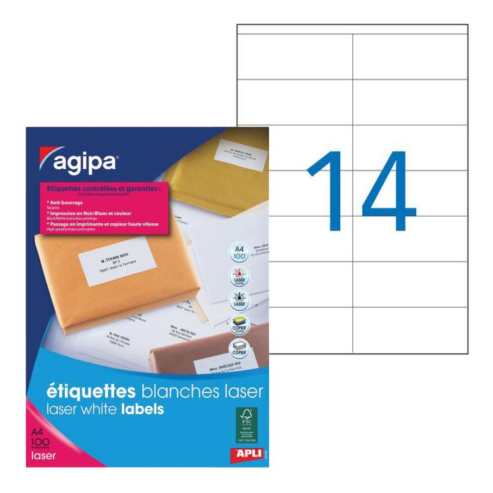 Etikety laser 105x42mm Agipa A4 100 hárkov