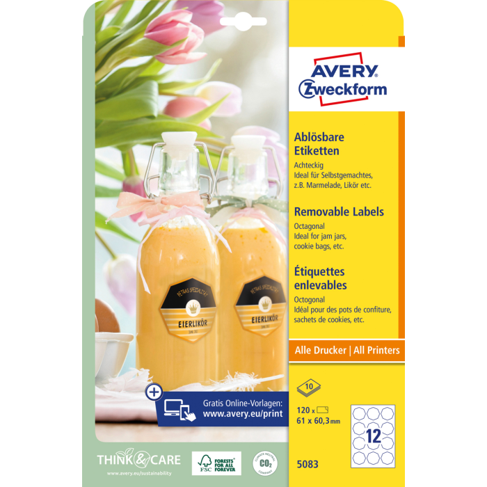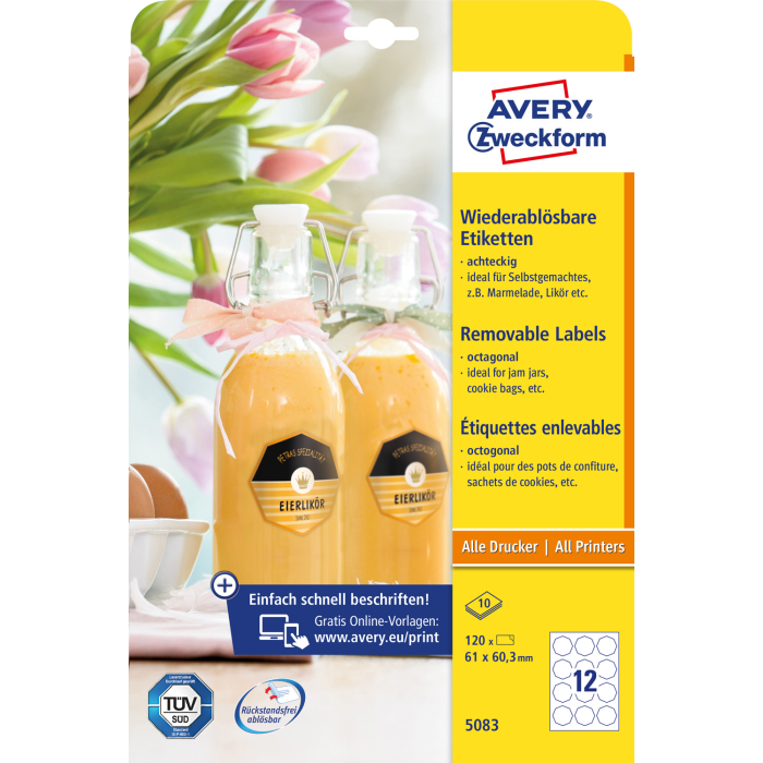 od konkurencie. Spoľahlivá priľnavosť ku sklu, fólii aj papieru. Ľahké odlepenie etikiet bez zanechania stôp po lepidle. Vhodné pre všetky druhy tlačiarní. Šablóny a softvér pre tlač etikiet zadarmo - výber z prázdnych či už navrhnutých, moderných