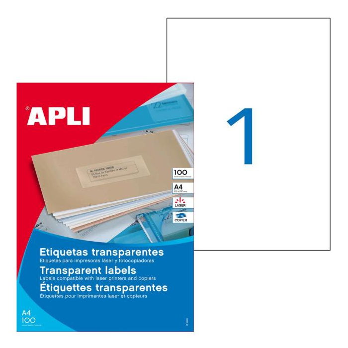 Etikety polyesterové priehľadné 210x297mm Agipa A4 laser 100 hárkov