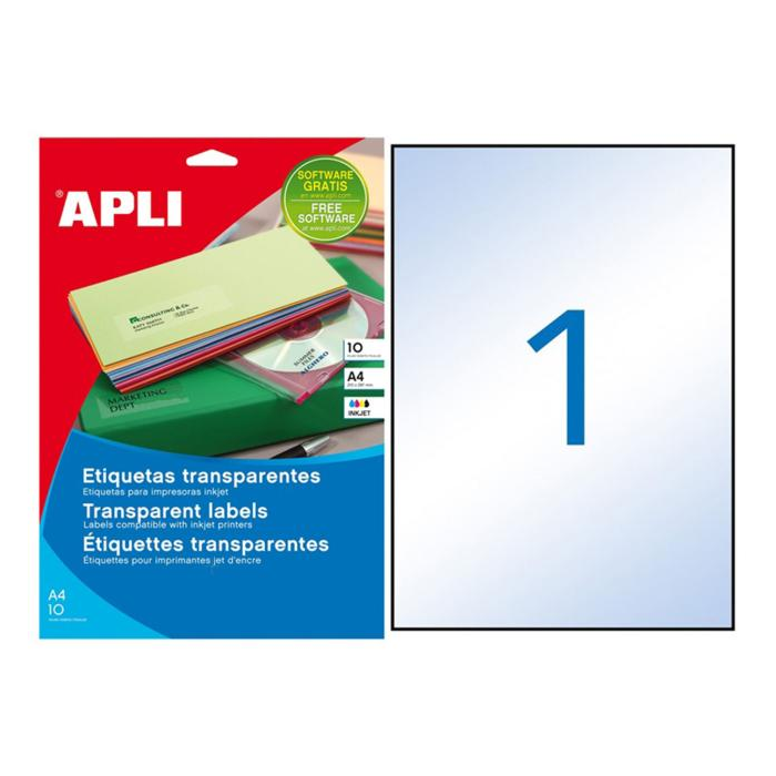 Etikety polyesterové priehľadné 210x297mm APLI A4 inkjet 10 hárkov