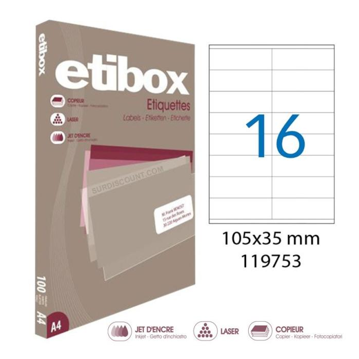 Etikety univerzálne 105x35mm Etibox A4 100 hárkov