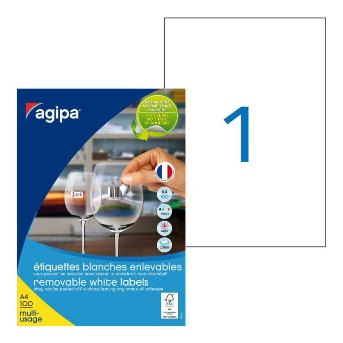Etikety univerzálne odnímateľné 210x297mm Agipa A4 100 hárkov