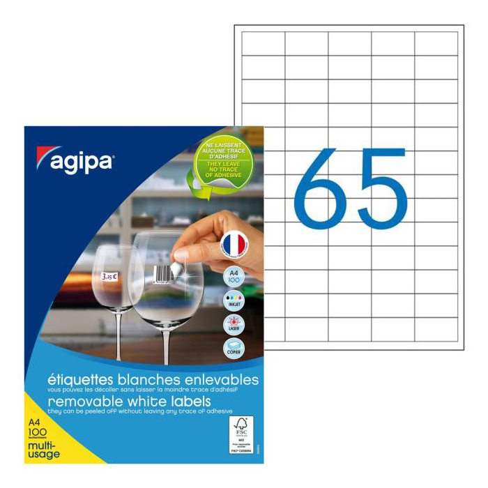 Etikety univerzálne odnímateľné 38x21,2mm Agipa A4 100 hárkov
