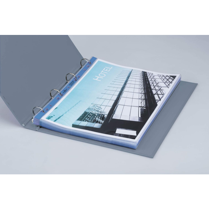 Priehľadné euroobaly z polypropylénu s farebným eurodierovaním. Otvor zhora. Formát A4. Balené v sáčku. Farba okraja modrá. Balenie 100 ks. Hrúbka 90 mic..