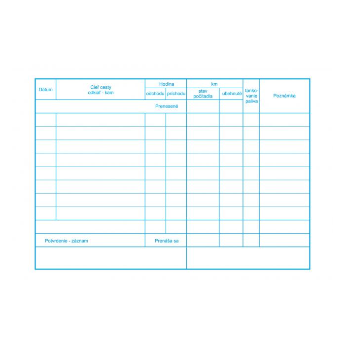 Dopravné tlačivo. Evidencia prevádzky osobného motorového vozidla, A5, kniha, 60 listov.