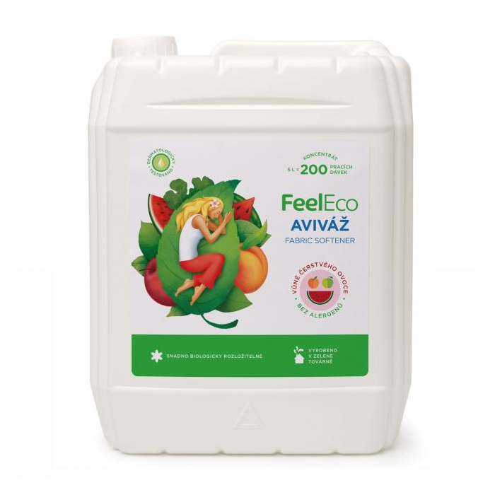 Aviváž s vôňou čerstvého ovocia FeelEco musíte vyskúšať! Koncentrovaný avivážny prostriedok s prírodnou vôňou čerstvého ovocia je vhodný pre všetky druhy tkanín. Účinne odstraňuje elektrostatický náboj z textílií a vaša bielizeň je po vypraní mäkká, príjemne vonia a ľahko sa žehlí. Prostriedok obsahuje parfum bez alergénov a je vhodný i pri praní detskej bielizne. Zloženie z ľahko biologicky rozložiteľných surovín je šetrné k životnému prostrediu.