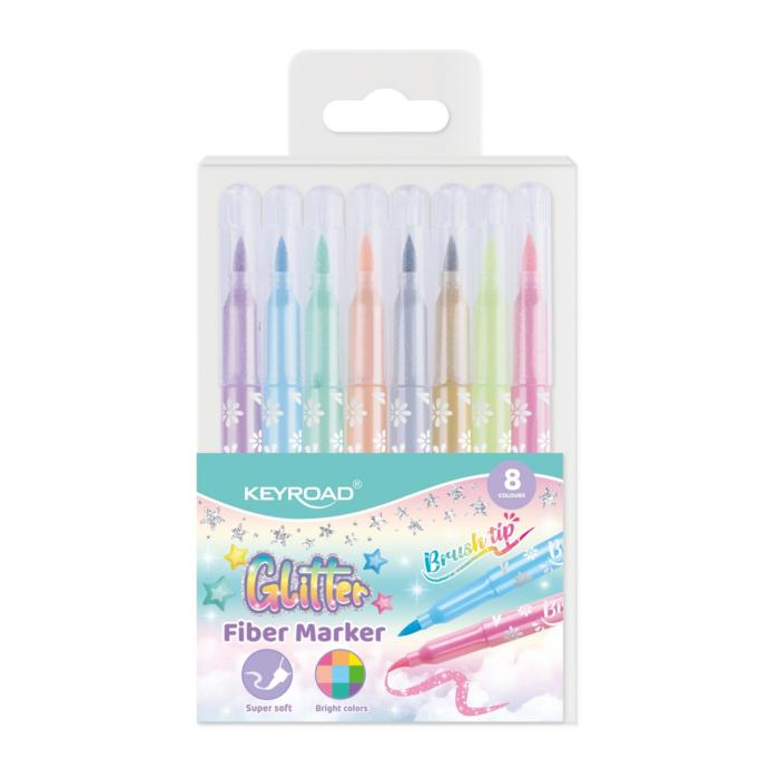 Fixky trblietavé so štetcovitým hrotom KEYROAD, 8 ks, mix pastelových farieb