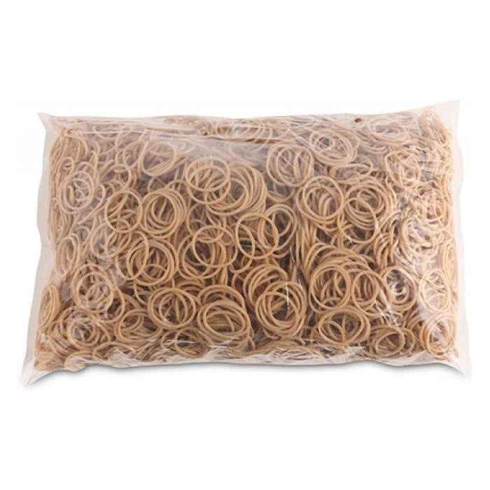 Odolné a pružné gumičky vyrobené z materiálu s prímesou gumy (60 %). Rozmery (hrúbka × šírka) 1,5 × 1,5 mm. Priemer 40 mm. Farba prírodná.