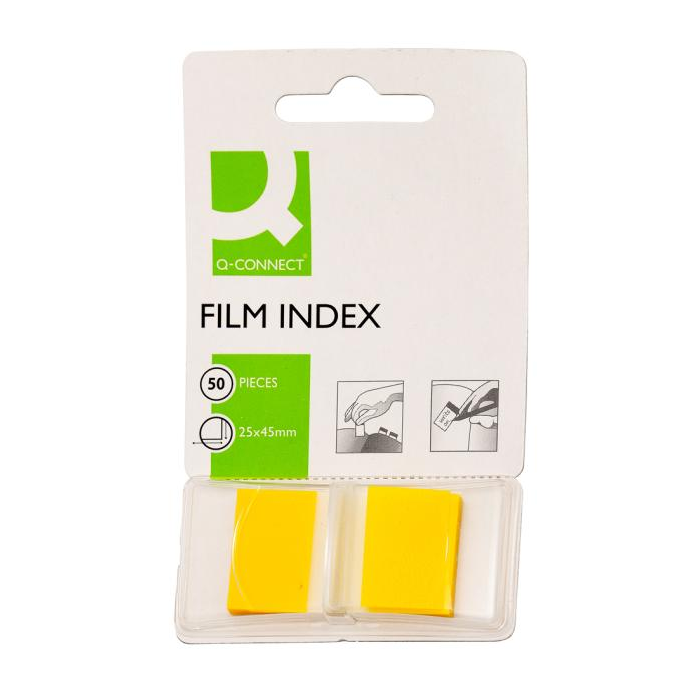 Indexové fóliové lístky, popisovateľné a snímateľné. Rozmery 25 × 43 mm. V balení 50 lístkov. Farba žltá.