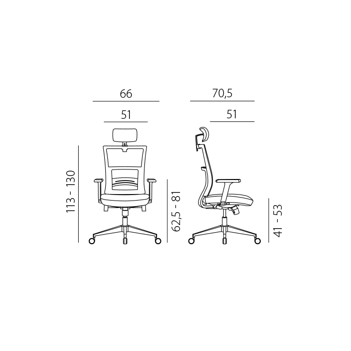 • kancelárska stolička s vysokým priedušným operadlom, opierkou hlavy, podrúčkami a molitánom sedáku zo studenej peny, synchrónny mechanizmus s nastavením sily protiváhy