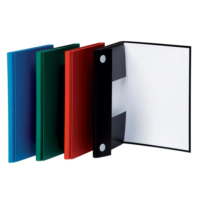 Trojchlopňový box na dokumenty z tvrdeného kartónu. Vonkajšia strana potiahnutá PP fóliou hrúbky 100 um, vnútro biela dyha gramáže 100 g. Uzatvárateľný krúžkami na suchý zips. Kartón hrúbky 1,8 mm. Kapacita 120 listov. Rozmery (š×v×h) 235×315×15 mm.Väčšie balenie 10 ks.