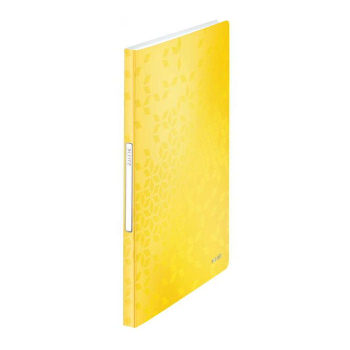 Katalógová kniha na prezentáciu dokumentov formátu A4, do ktorých sa často nahliada. Vyrobená z polypropylénu v dizajne WOW v žiarivých farbách. Vybavená 40 čírymi vreckami hrúbky 45 mic. a samolepiacou chrbtovou etiketou na popis. Väčšie balenie 10 ks. Kapacita 80 listov. Rozmery (š × v × h) 233 × 310 × 16 mm. Farba žltá.