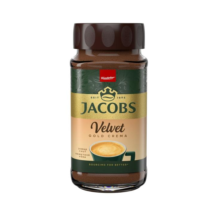 Rozpustná káva Jacobs Velvet Gold Crema prináša unikátne spojenie jemnej chuti a bohatej zamatovej peny.