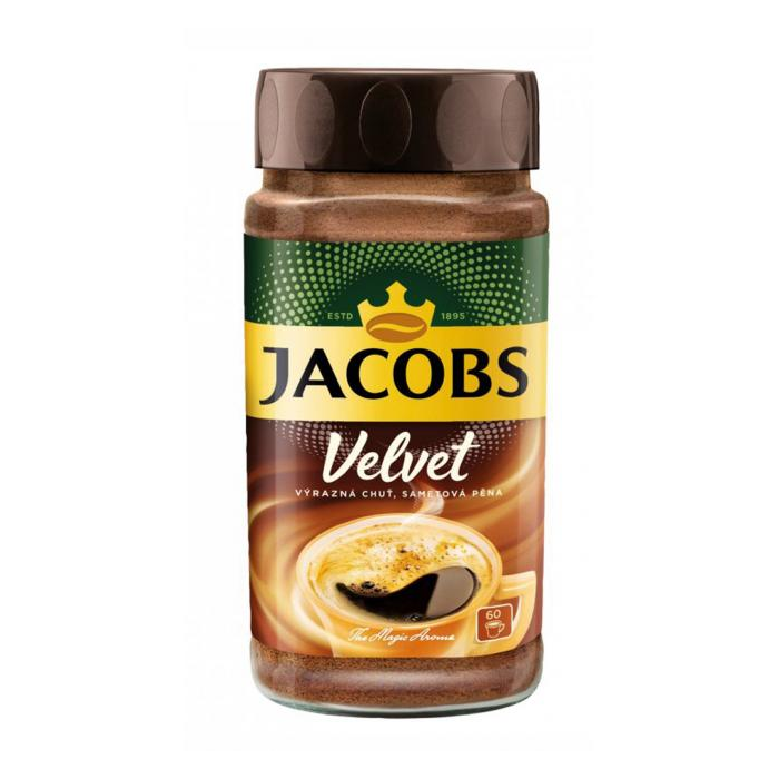 Instantná káva Jacobs Velvet s jemnou penou a bohatou chuťou. Hmotnosť 100 g. Zloženie: 100% instantná káva. Balené v ochrannej atmosfére. Skladovať na suchom a chladnom mieste.Návod na použitie: 1-2 lyžičky (1,7g) zaliať 200 ml horúcej vody (85°C). Stačí na prípravu 120 šálok. Pohár - Sklo - štandardne recyklované. Pôvod Veľka Británia.Výrobca Jacobs Douwe Egberts Netherlands, Oosterdoksstraat 80, 1011 DK Amsterdam Holandsko, 0800 500 199.
