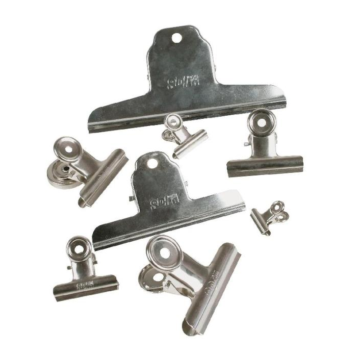 Pochrómovaný klip s pružinou na zopnutie papierov. Šírka 75 mm.